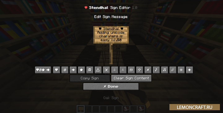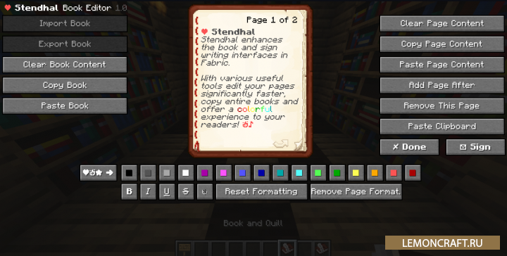 Мод на редактируемый текст Stendhal расширяет возможности в процессе редактирования текста, который отображается на табличках, при написании книг и в чате. Теперь вы сможете использовать в тексте курсив, жирны, подчеркивание, менять цвет текста и вставлять нужные вам символы.