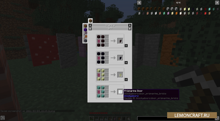 Мод на каменные двери Blocky Stone Doors добавит в игру 28 новых вариантов потайных дверей, текстуры которых будут повторять текстуры ванильных блоков. Плюсом данного мода является то, что он совместим с ресурспаками.